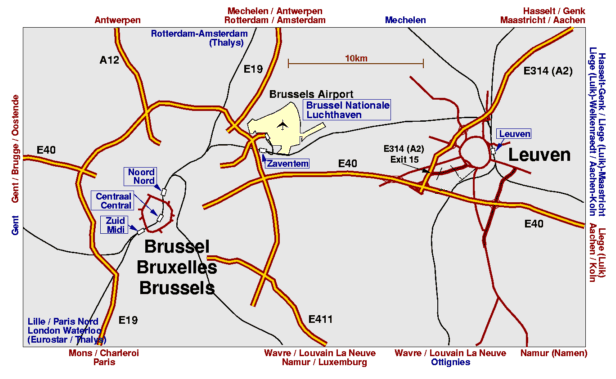 Important remark : Leuven is about 25 km east from Brussels. Do not confuse Leuven with Louvain-La-Neuve, where the francophone university UCL is situated. Louvain-la-Neuve is about 30 km away from Leuven!